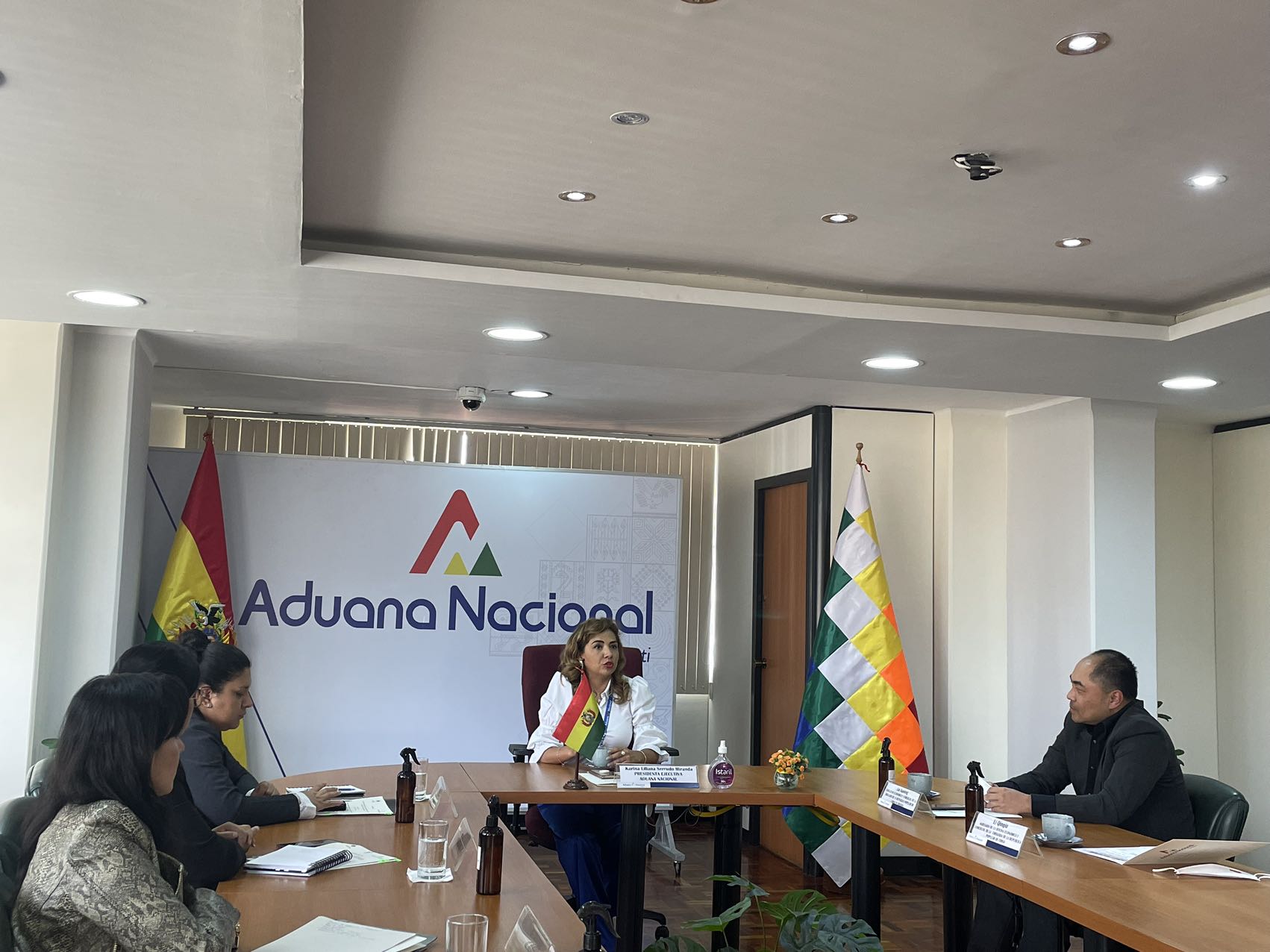 4月11日,驻玻利维亚使馆经商参赞刘晓峰拜会玻利维亚国家海关关长塞鲁多,双方就两国海关合作等议题交换意见,玻国家海关总经理卡松等参会。