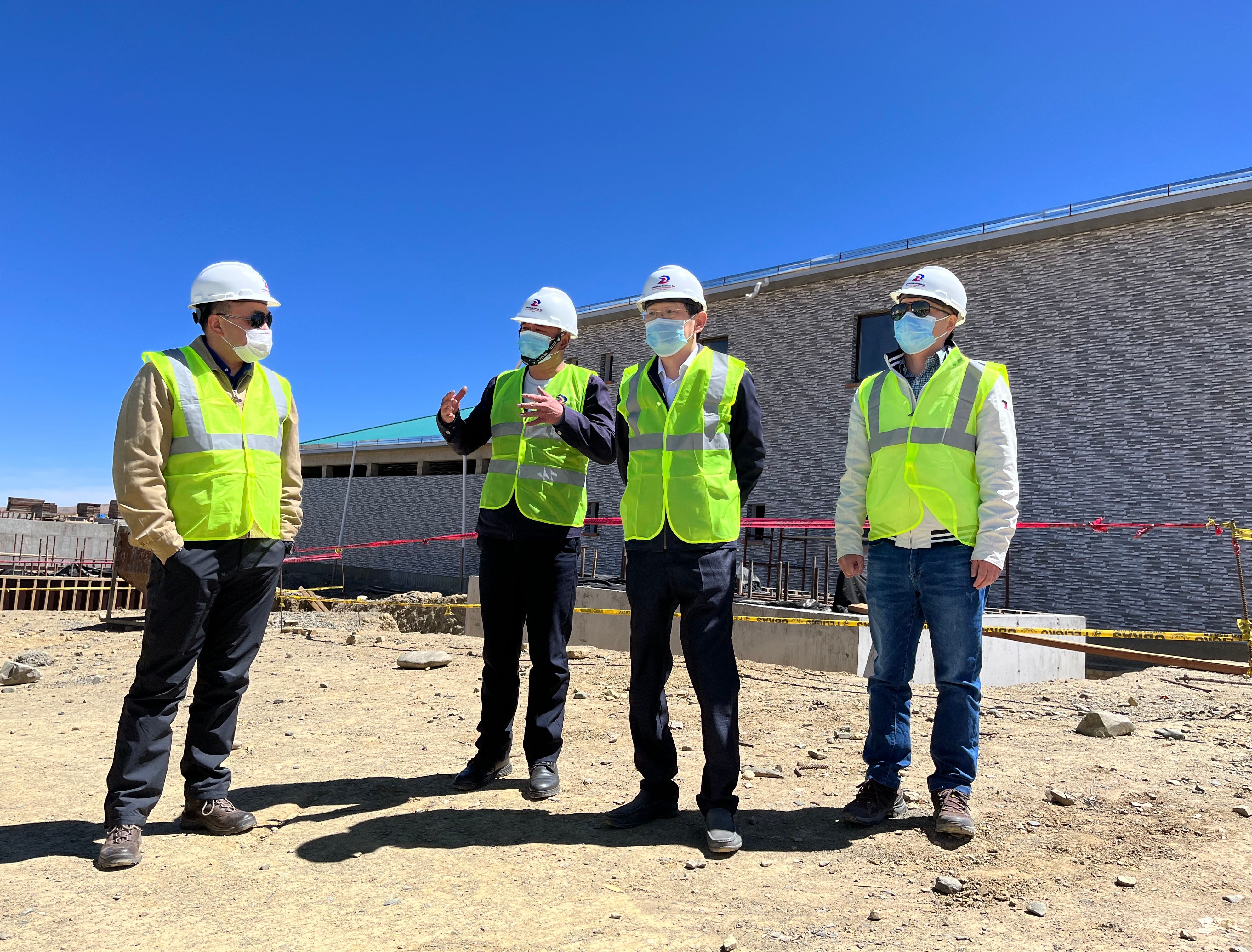 黄大使一行来到海拔4000米以上的阿尔托供水项目施工现场和营地,巡视工程进展和安全防范措施,并代表使馆慰问了中玻企业员工。