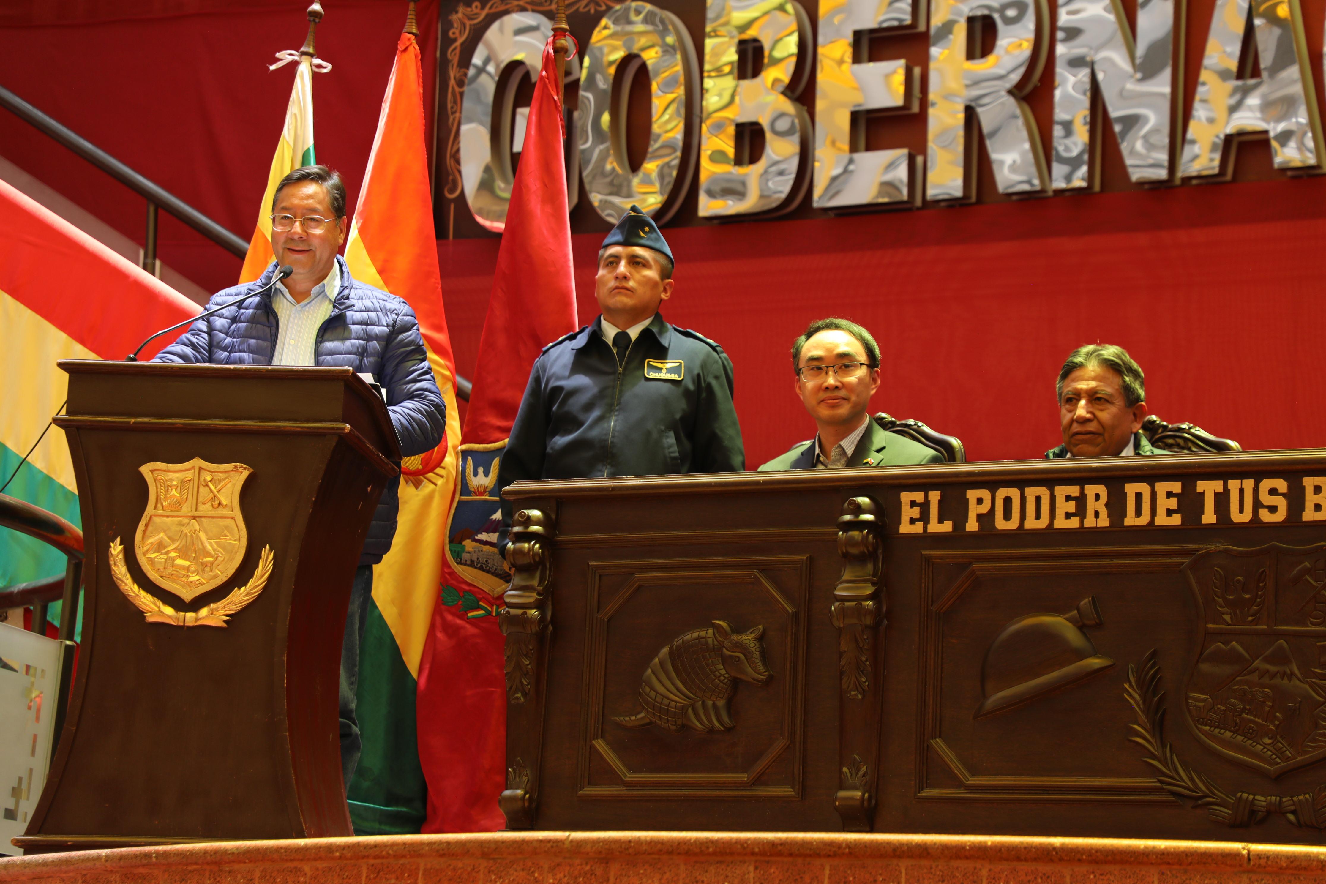 2月6日,在阿尔塞总统见证下,驻玻利维亚大使王亮与玻发展和规划部部长库斯坎基在奥鲁罗省省政府签署奥鲁罗锌冶炼厂项目政府间框架协议,玻副总统乔克万卡、矿业和冶金部长基斯佩、奥省省长罗德里格斯等政要和社会各界200余人出席仪式。