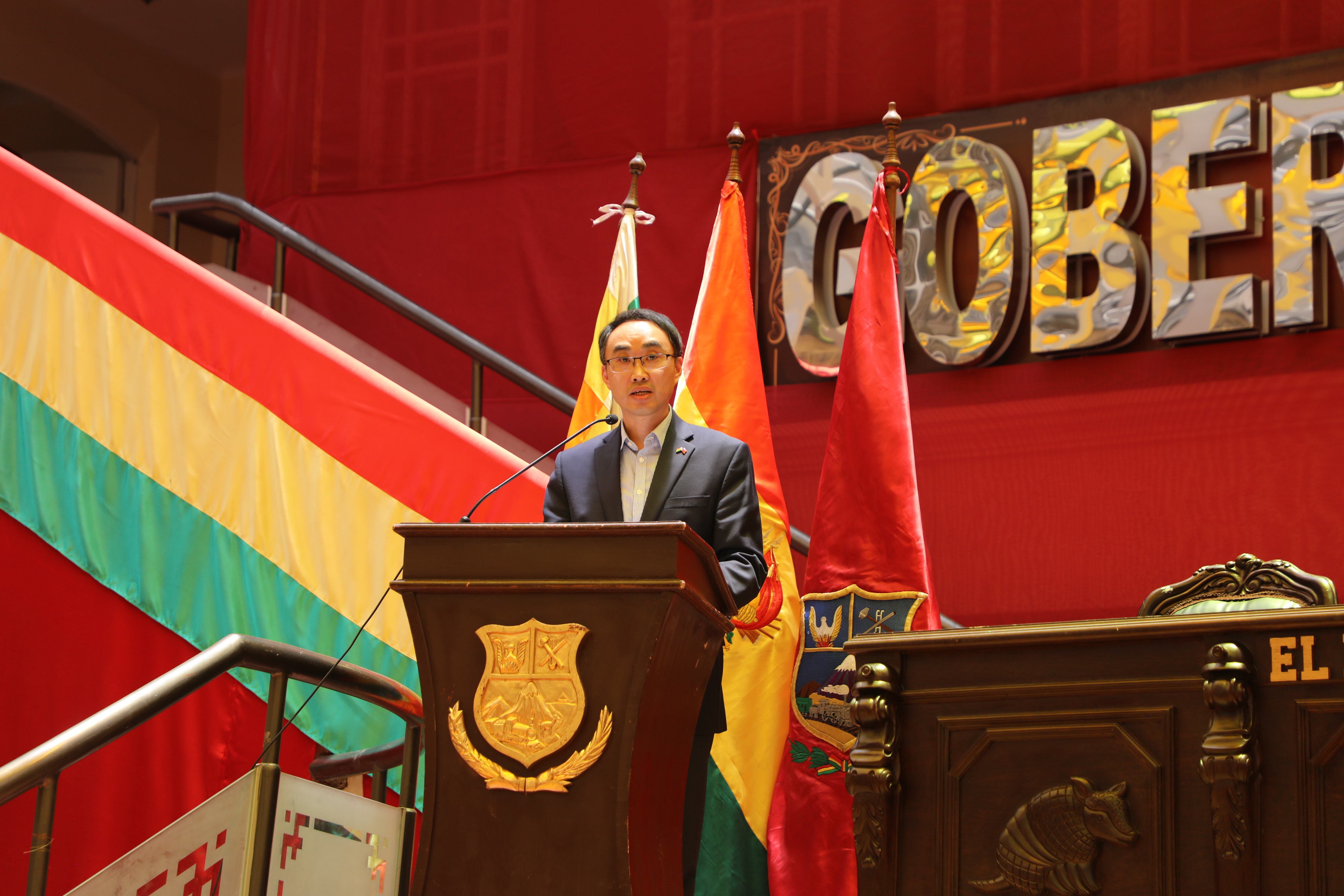 王亮大使在致辞中向玻方来宾送上新春祝福并强调,奥鲁罗锌冶炼厂是中国政府优惠贷款支持实施的两国重点产能合作项目。中方愿同玻方加强发展战略对接,不断推动两国战略伙伴关系迈上新台阶。