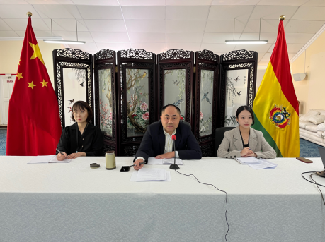 2023年4月28日,驻玻利维亚使馆经商处以视频方式与在玻中资企业举行业务交流会,就推动中玻互利合作实现高质量发展进行研讨,驻玻利维亚使馆经商参赞刘晓峰以及35家在玻中资企业代表80余人出席会议。