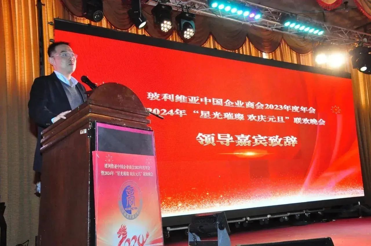 12月29日,玻利维亚中国企业商会2023年度年会暨2024年度“星光璀璨 欢庆元旦”联欢晚会在拉巴斯圆满举行。中国驻玻使馆贺征代办、刘晓峰参赞等受邀出席,商会会员企业200余人参加活动。